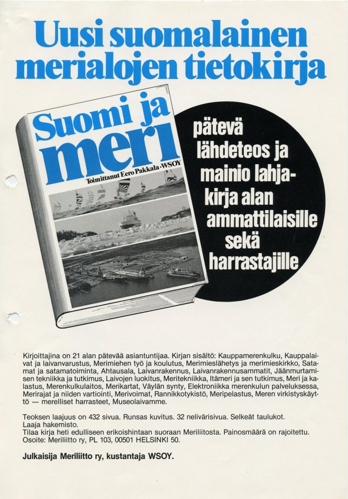 Englannissa Greenwichissä järjestetään Sea Finland-näyttely. Meriliitto avustaa järjestäjiä suunnittelemalla suomalaisen kauppamerenkulun osastoa yhdessä järjestäjien kanssa.
