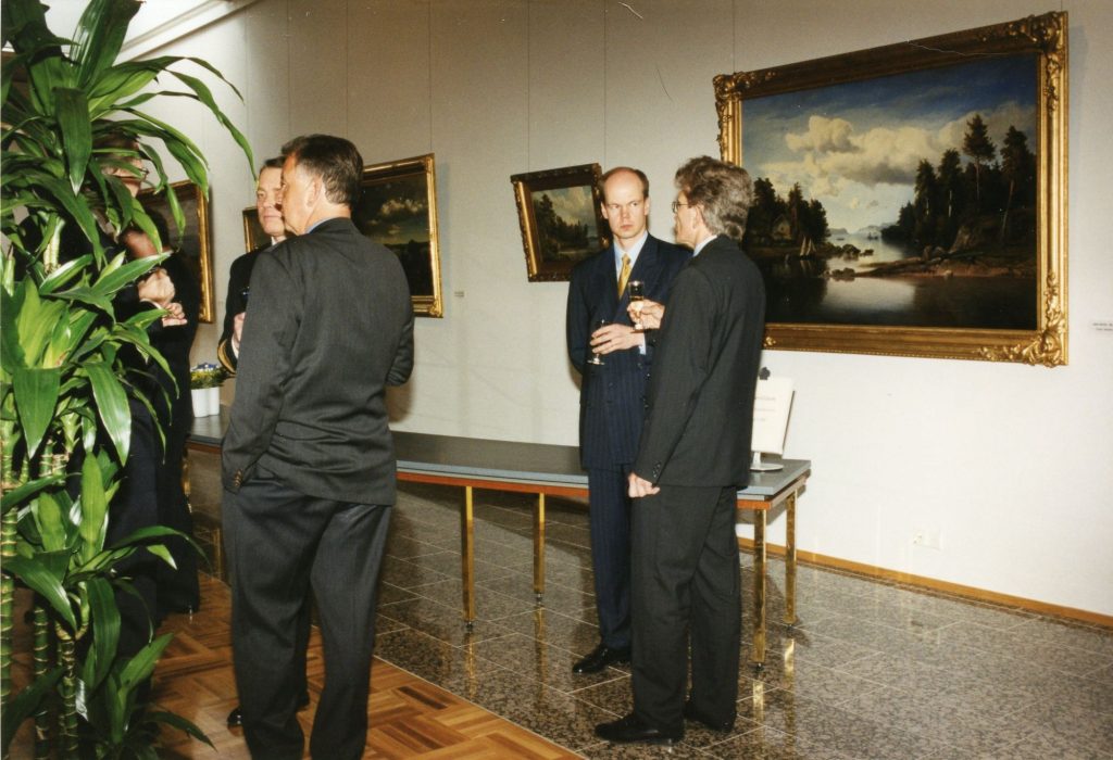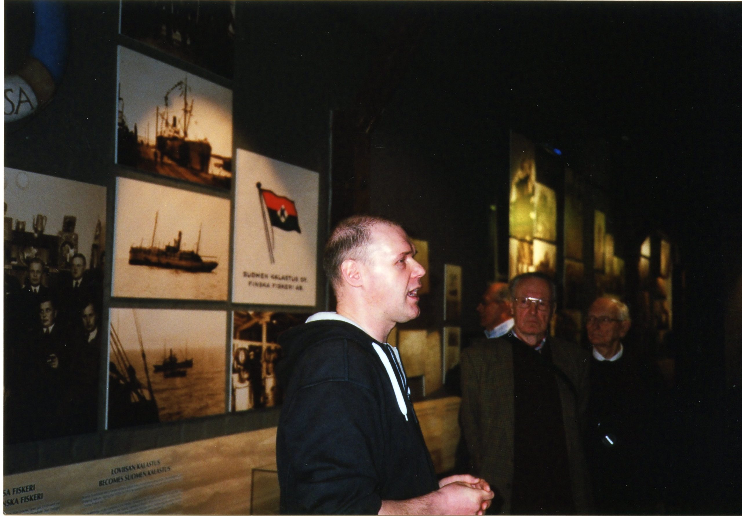 Esitelmätilaisuus jäänmurtaja Sisulla. Sanoma Oy:n hallituksen puheenjohtaja Aatos Erkko esittelee osallistujille laivamuseotoimikunnan työtä. Erityisen vilkasta keskustelu on pohdittaessa Suomen Joutsenen tulevaa sijoituspaikkaa.