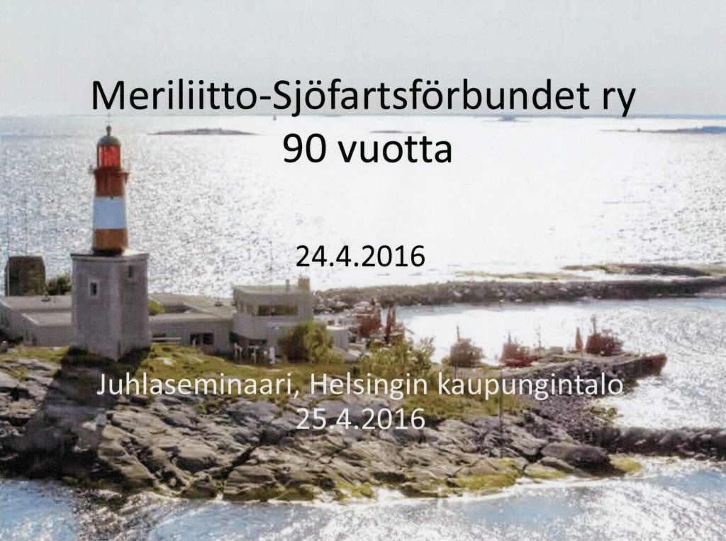 Helsingin kaupungintalolla järjestetään juhlaseminaari Meriliiton 90-vuotispäivän kunniaksi. Juhlapuheen pitää liikenne- ja viestintäministeri Anne Berner, Helsingin kaupungin tervehdyksen tilaisuuteen tuo kaupunginjohtaja Jussi Pajunen. Meriliiton puheenjohtaja käy avauspuheenvuorossaan lyhyesti läpi yhdistyksen historian, jossa hän toteaa yhdistyksen syntyneen torpedovene S2:n uppoamisen ja 53 merisotilaan hukkumisen seurauksena. Yhdistys perustetaan 24.4.1926 ajamaan laivastolakia, jonka avulla laivastolle saadaan uusi peruskalusto. Epäsuorasti tämä myös luo lamavuosina pohjaa nykyiselle telakkateollisuudellemme. Sotien jälkeen liitto tukee kauppalaivastomme uudelleenrakentamista ja käynnistää nuorisotoimintaa muun muassa perustamalla Suomen Purjelaivasäätiön. Meriliiton rooli tänä päivänä on toimia merellisenä yhteistyöfoorumina, tuoda esiin merenkulun ja muiden merellisten toimintojen merkitystä sekä lisätä kiinnostusta merialoihin ja lisätä niiden arvostusta ja tietoutta.